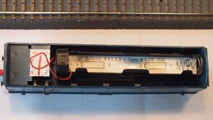 Kuvan perusteella akkuvaunussa on 4 × 1,5 V AA-patterit